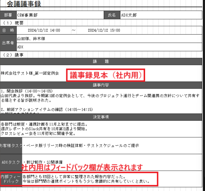 ここでは、ADXCで実際に運用している「用途別の議事録出力」の方法をご紹介します。