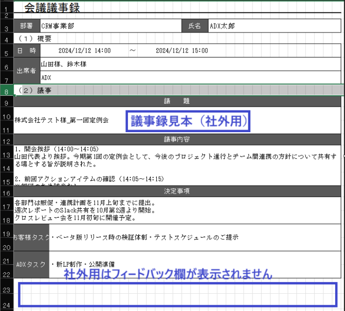 【社外用フォーマット】※社外用はフィードバック欄が表示されません。