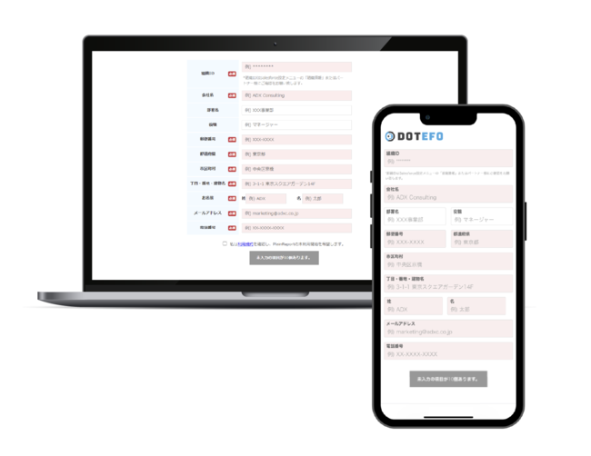 以下のリンクからDOTEFOの適用前と適用後の入力フォーム(モック)をご確認いただけます。